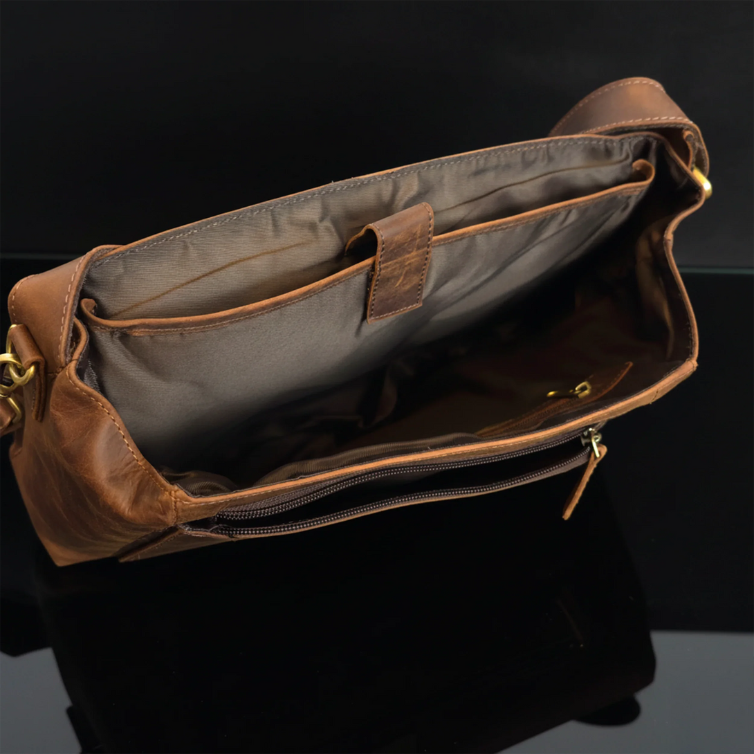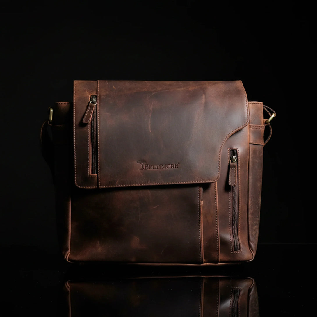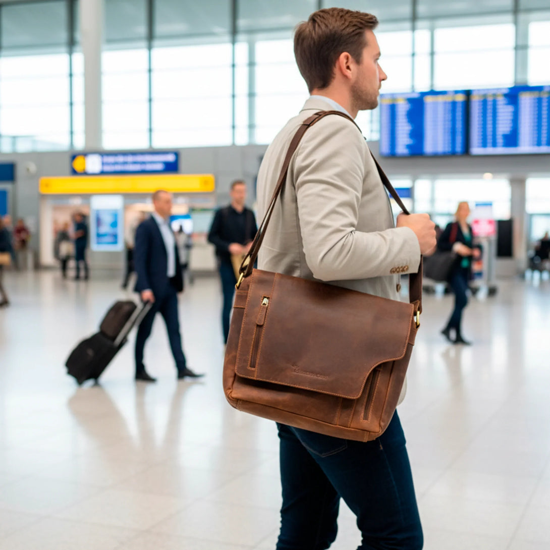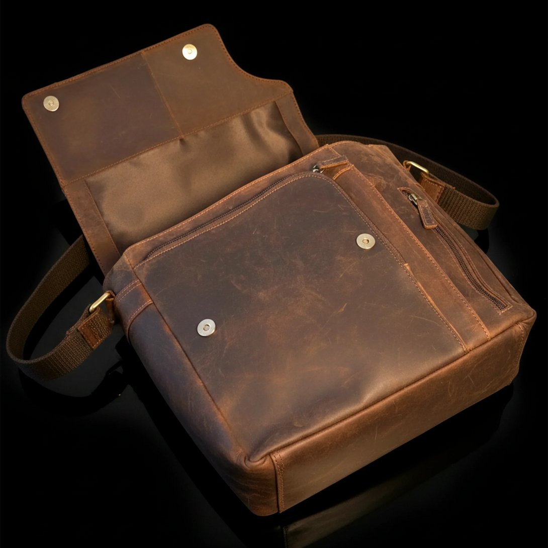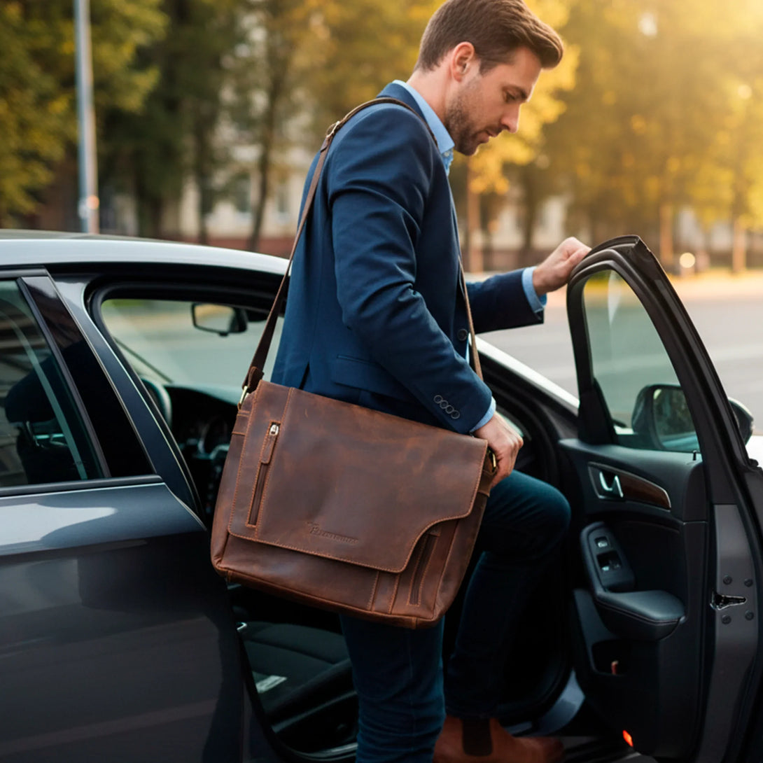 Men's Geantă de umăr din piele – Piele nubuc maro